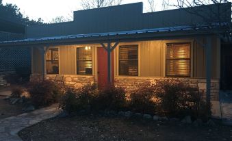 The 2 bedroom / 2 bath cottage is behind gated access and sits comfortably on the side of a hill overlooking the Guadalupe River Valley. It is nestled off to the side and slightly behind the main home in the yard area. There is a nice privacy garden that provides separation between the two. The cottage is well equipped with each room having its own new HVAC system and new ceiling fans to provide maximum sleeping comfort. The front bedroom has a King bed and the back bedroom has 4 Twin beds. There are sleeping accommodations for up to 6. Each bedroom has its own separate bathroom including new washbasins and new tile and glass showers. Each bedroom comes with wall mounted Direct HD TVs and fast Wi-Fi. All of the kitchenette appliances are new and include a fridge / freezer with icemaker, gas cooktop, and Breville Smart Oven. A Mr. Coffee maker is provided for your comfort and convenience. There is also a gas grill for outdoor cooking on the patio and a fire pit with a grill on top. For our guests who plan longer stays, The cottage is complete with a washing machine with a gas dryer and optional housekeeping can be arranged. Otherwise, cleaning is completed following your stay.