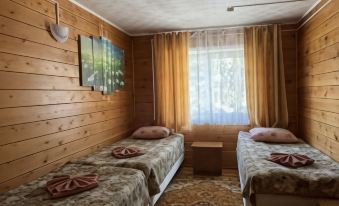 Two guest houses were built on the hotel territory. All buildings and interior decoration of the rooms are made of wood. The maximum number of people who can simultaneously stay in the hotel is 50 people. There are comfortable rooms with private bathrooms, as well as economical accommodation for small groups with shared facilities.