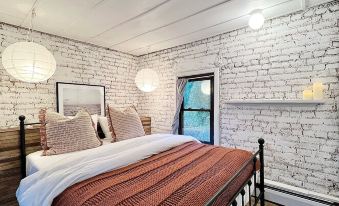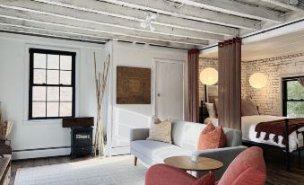 The Loft is a bohemian style open concept with a spacious living room, separate sleeping area, renovated bathroom, and full kitchen. The apartment is filled with natural light from the windows overlooking Rondout Creek. The Loft has one queen bed, one bathroom with a shower and dedicated heating and cooling. This is the third floor of a duplex home and is accessed via a private entrance on the back of the house.