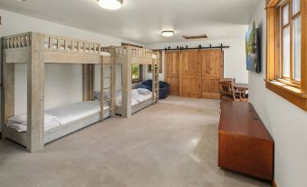 * 1 King Bed (sleeps 2), 1 Queen Bed (sleeps 2), 2 Double Beds (sleeps 4), Loft (1 double on double, 1 twin over twin bunk beds, sleeps 6) -> Sleeps Total of 14