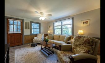 Make your stay a bliss at this peaceful and centrally-located cottage. 2 bedrooms, 1 bath and a futon for extra guests— bring your fur babies too! Up to 2 dogs allowed (fee). New appliances, well stocked kitchen and a backyard yard or patio/deck area to relax on. Grills available to cook outdoors as well! The right shed door has beach equipment for guests to use!