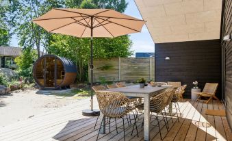 Single-family house, built in 2024. 450 m from the sea. Private: natural state property 1'307 m2. Outdoor shower. In the house: washing machine, tumble dryer. Parking at the house. Grocery 1.8 km. The owner does not accept any youth groups. "Lonneke" - 450m from the sea", 4-room house 135 m2. Object suitable for 8 adults. Living room with TV. 1 room with 1 double bed. 1 room with 1 double bed. 1 room with 2 beds. Kitchen (oven, dishwasher, 4 induction hot plates, microwave). 2 showers/WC. Facilities: Internet (WiFi). Please note: non-smokers only. Maximum 1 pet/ dog allowed. Bookings accepted for holiday purposes only. 706