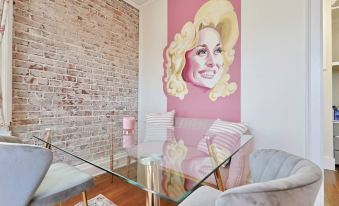 Embrace the bright side of life in this Floral - Dolly inspired midtown studio suite! Features include a queen sized bed, brand new furnishings, and fully stocked essentials while being just a short walk from the vibrant Old City, Gay Street, and Market Square.