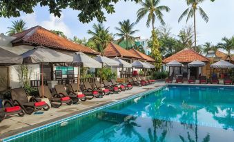 Это бюджетный отель, который связан с хорошим отелем напротив. Поэтому доступны все блага небюджетного отеля через дорогу- хороший пляж с лежаками и зонтиками, завтраки с шикарным видом. При отеле можно взять байк за адекватную цену. Проблем с возвратом никаких не было.