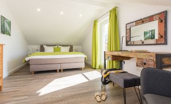 Ruhe, schöne Umgebung und dazu den Comfort eines Ferienhauses mit gehobener Ausstattung, alles top gepflegt - es war ein voller Genuss. 20 m bis zum klaren/sauberem See (ideal für SUP), Fahrradabstellraum nutzbar. Dinge des täglichen Bedarfs in max. 5-10 min per Rad/2 min per Auto erreichbar. Brötchenservice verfügbar. Wir kommen gerne wieder.