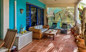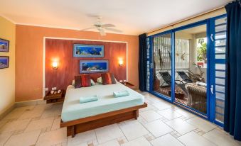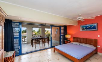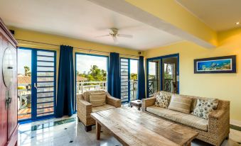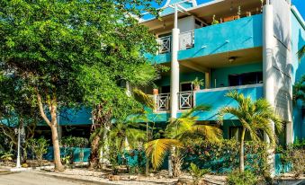Caribbean Court 218. The look for Bonaire apartment rentals stops here with this beautiful two-bedroom apartment at Caribbean Court! Each bedroom is outfitted with Queen-sized beds and has air conditioning; the apartment has two bathrooms and two balconies. One balcony has beautiful views of the lagoon while the other has a tropical garden feel like it’s an extension of the living room.