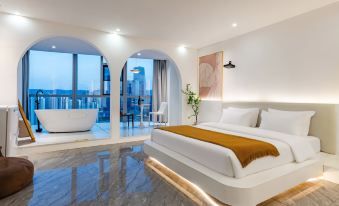 Santorini Scenic Double Bed Room (Panoramic Floor-to-Ceiling Window, Deluxe Bathtub, 100-Inch Projection)