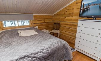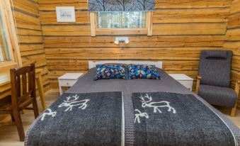 The spacious cabin features three bedrooms: two with comfortable double beds and one with two separate beds. Living room/kitchen creates a cozy space for gathering, while the electric sauna provides relaxing moments at the end of the day. Additional information: Wi-Fi = 4G (100 Mbps).