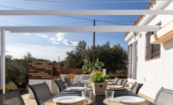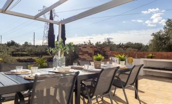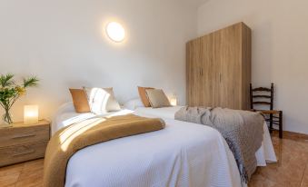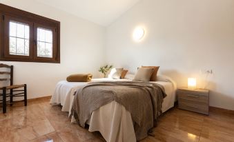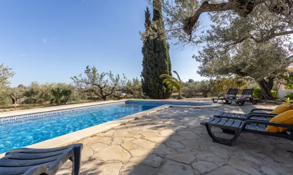 L'Ampolla 5 km from L'Ampolla Playa: Rustic, comfortable 2-family house "Filou", surrounded by trees and fields. Property composed of main house and outbuilding, on the outskirts, 5 km from the centre of L'Ampolla, in a secluded, quiet, sunny position, 5 km from the sea, 5 km from the beach, located by a road. Private: property (fenced), natural garden, swimming pool angular (4 x 8 m, depth 160 cm, seasonal availability: 01.Apr. - 31.Oct.) with internal staircase. WC in the pool area, outdoor shower, patio, garden furniture, barbecue. In the house: WiFi, air conditioning, washing machine. Parking on the premises. Shopping centre 5 km, restaurant 5 km, bus stop "L'Ampolla" 11 km, railway station "L'Ampolla" 10 km. Nearby attractions: Parque Natural del Ebro 5 km, parque Portaventura 65 km, Pitch & Putt 2 km, Barcelona 170 km. Hiking paths: Parque natural Puerto Tortosa Beseit 52 km. Please note: car recommended. Suitable for families. Groups of teenagers on request only. "Filou", 5-room house 200 m2, lower ground floor. Spacious and bright, comfortable and rustic furnishings: living/dining room with dining table, digital TV, air conditioning and forced-air heating. Exit to the patio. 1 double bedroom with 1 french bed (150 cm, length 200 cm). 1 double bedroom with 2 beds (90 cm, length 200 cm). 1 room with 1 bed (90 cm, length 200 cm). 1 double bedroom with 2 beds (90 cm, length 200 cm). 1 double bedroom with 2 beds (90 cm, length 200 cm). Open kitchen 15 m2 (4 hot plates, oven, dishwasher, toaster, kettle, microwave, freezer, electric coffee machine) with bar. Exit to the patio, to the swimming pool. 2 showers/WC. Electric heating, air-conditioning, forced-air heating. Patio. Terrace furniture, barbecue, deck chairs, covered balcony. Very beautiful view of the countryside. Facilities: washing machine, iron, mosquito net, hair dryer. Internet (WiFi, free). Parking (fenced). Suitable for families. No internal connecting door between the separated properties. HUTTE-002669 ESFCTU0000430200001466880000000000000000HUTTE-0026692