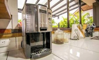 Gorgeous home. Loved using the swimming pool and having the sliding doors and windows wide open! Wished we had access to the washer/dryer behind the locked closet door. Ample room for my spouse and I and our 2 young kids. Felt safe behind the locked gate and doors. Kitchen well equipped. We didn’t have a car so we walked about a mile into town each time, it was hot so I would definitely recommend having a car to stay in this home. Some tour companies and drivers had a hard time finding it because it’s in a newer area.