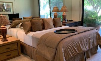 The Kitchen has plenty of prep space and is fully equipped for any cook, including a stainless steel refrigerator, oven and gas range, microwave, dishwasher and coffee maker. The BBQ is located out the sliding glass door to the private courtyard.
