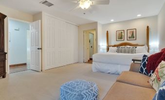 This home is perfect for those who love to entertain -- boasting a fully stocked kitchen, a patio grill, an abundance of dinnerware and serving dishes, a dining room table that seats six, and coordinating outdoor tables and chairs that can seat up to 8. With three distinct patio areas, you’ll always find the perfect place to enjoy sun or shade with a cup of coffee, glass of iced tea, or pitcher of margaritas.