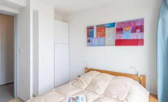 Perfect location (sea, town center, shops). Everything is done on foot. Superb sea view. Very appreciable covered garage. Correct apartment: good size and layout of the rooms, good bedding, great terrace. The negative point is the kitchen part: the sink i