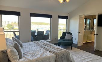 Lake Travis retreat with three levels for relaxation and fun! The lowest level provides lake access and a large pool ready for lounging and volleyball. The ground floor level is a large covered patio with a full outdoor kitchen, Hot Tub, large outdoor TV, and games including Pool, Ping-pong, and Foosball! Up the stairs to the third level is a spacious 4 bed 4 bath home with amazing lake views from the full balcony. Two master suites and two bunk-bed rooms make this the perfect location for families to reconnect.About pets:No pets allowed.About checkOut:Check out before 11:00 AM.About children:Children allowed: ages 0-17.About customRules:Quiet hours between 9 pm and 7 am.