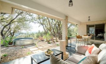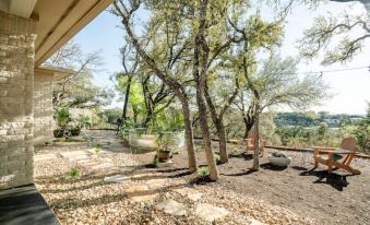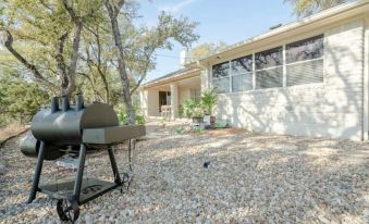 Conveniently located near Lake Travis and just a short 45-minute drive from Austin, this inviting home sits in the heart of nature. Thoughtfully decorated with numerous artworks created by the owner, it offers a unique and inspiring atmosphere for all who stay.