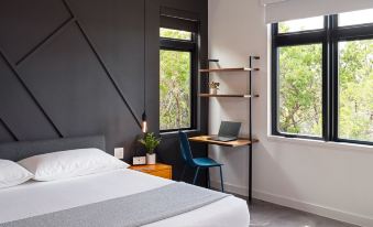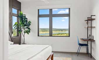 • Two Master Bedrooms with Casper King mattresses, 600 thread count sheets, blackout shades and 5-star boutique custom design. Both Masters feature desks for private “work from vacation” productivity, Samsung TVs, Private Bathrooms with double sinks, matte black wall-mounted faucets, and water closets.