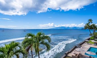 (Note: Our concrete oceanfront building, Lahaina Roads, was among the few in Lahaina that endured the 2023 fires. Since then, the entire property has been beautifully renewed with new paint, walkways, railings, and premium pool furnishings — restoring it to better-than-ever condition. The surrounding area, including local restaurants and shops, has reopened and continues to thrive.)