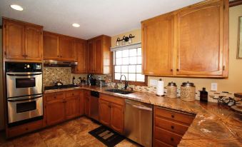 Kitchen pots & pans were filthy dirty, but there were plenty of them. Built in ovens were real small, about apartment size. No wash cloths in bathrooms. Garage was major dumping area for stuff that should be hauled to dump.
