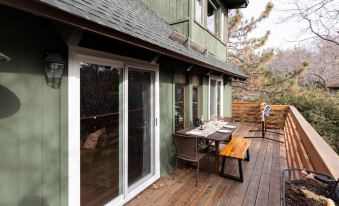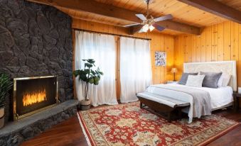 The primary bedroom has its own cozy fireplace, sitting area, & access to the secluded second deck with the treetop views. This is another space where peace & quiet surround you with the sounds of nature. The room itself has lots of natural light with tall ceilings & comes equipped with blackout shades & drapes for those who want to have a sleep-in day to rejuvenate the senses. The bunk bed room is the perfect space for either adults or kids with comfy beds.
