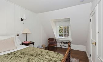 Bedrooms: The cottage features three cozy bedrooms and a bonus room—one downstairs with a queen-sized bed next to the full bathroom, one bedroom is located upstairs with a queen bed next to a half bathroom, and the other bedroom features two twin-sized beds, and an adjoining room that contains a full bed with dresser, perfect for families or small groups. Fresh linens, comfy bedding, plenty of pillows, and blackout curtains to ensure a restful night’s sleep.