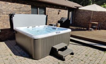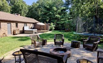 We had a nice stay in Sawyer over the 4th of July weekend. The location is very close to Warren Dunes State Park and the fruit stand on Red Arrow Highway. The house and hot tub were very clean, maintained and organized. We appreciated the small touches of hospitality and kid friendly activities, such as the trampoline and playset. The backyard was quiet and we had good privacy. Overall, we had a very enjoyable stay!