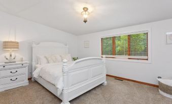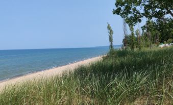 Surrounded by trees and sounds of nature, hidden away from local traffic, is a beautiful sunny property. Spacious house that sleeps 7, 3 bedrooms, 2 full baths, large deck, brand new hot tub, (garage space is not at available at this moment), fire pit, playhouse, all walking distance from the beach, (Warren Dunes park/beach 15 mins walk or 5 mins bike ride) Towels, linens, and coffee are provided.