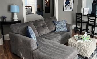 Everything about this experience was 10/10! Sue the host was super responsive and checking was a breeze. The apartment is beautifully decorated and immaculate. The location is ideal for walking to the downtown area with shops and restaurants along the way. The Quiktrip gas station across the street was perfect for morning coffee and snacks!! it was so heartwarming too to check in and find a bottle of wine chilling in the refrigerator with a thoughtful, thank you note and a 15 gift card for one of the local pubs!!! The best customer service I’ve experienced of any VRBO property!!! We will definitely be back again. Thank you, Sue!!