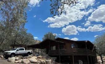The cabin is located on 2.5 acres and is adjacent to BLM federal land. This location is a hikers and earth enthusiast paradise.