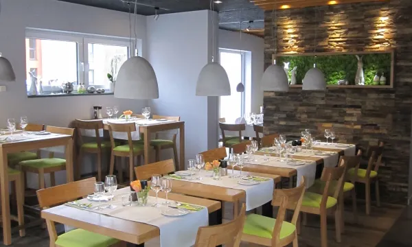 Eine große abwechslungsreiche Menükarte mit exzellenten eigenen Weinen zu fairen Preisen. Hier wird noch frisch gekocht und auch auf Allergiker eingegangen. Auch die Kuchen sonntags sind ein Genuss! Hier fühlt man sich direkt wohl durch Herzlichkeit! Besonders hinzuweisen ist auf den Service für Menschen mit Hörbehinderung im Hotelbereich und im Restaurant. Klasse.