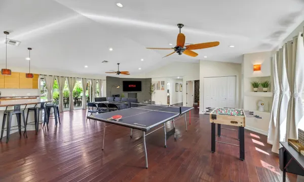 We enjoyed our stay! Great location, quiet neighborhood. Wonderful host. Perfect for our family trip! Lots of space and things to keep kids busy! Loved the pool, foosball and ping pong table! Would definitely stay again!