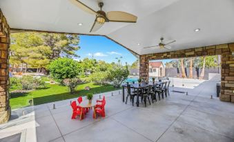 Step into Vegas VIP Luxury Villa, an expansive 6-bedroom, 3-bathroom home nestled on a 1-acre lot—the perfect haven for large groups, families, or friends seeking an unforgettable Las Vegas experience. This private and tranquil escape boasts state-of-the-art entertainment, high-end furnishings, and a sprawling backyard oasis designed for relaxation and fun.