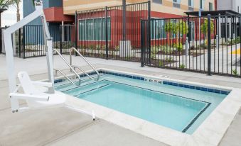 Nice new hotel with outdoor pool and large hot tub. Sitting room with its own TV, and another in the bed area. Welcome gift of water and treat when you check in. Easy access to freeway.
