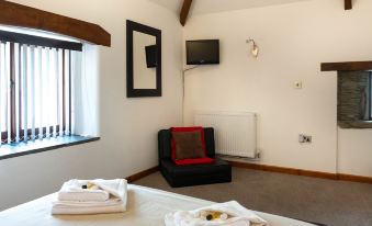 Beautiful, cosy cottage "Hay". In the hamlet St Clether, in the district Launceston, in the countryside. For shared use: meadow, courtyard. Children's playground (slide, swing). In the complex: reception, sauna (extra). Fitness room (extra). Hot tub (extra). Table tennis, billiard table, playroom, washing machine. Parking. Shop 14 km, supermarket 19 km, restaurant 6 km, bar 6 km, bus stop "Altarnun" 7 km, railway station "Bodmin Parkway" 35 km, sandy beach "Bossiney Cove" 16 km. Golf course (9 hole) 30 m, walking paths from the house 400 m, fishing possibilities 14 km. Nearby attractions: Tintagel Castle 18 km, Boscastle 14 km, Eden Project 47 km, Port Isaac 24 km, Widemouth Bay 22 km, Pentargon Waterfall 14 km. Hiking paths: Bodmin Moor 17 km. Please note: animals in the neighbourhood. 2-room cottage 46 m2. Tasteful and cosy furnishings: open living/dining room with 1 sofabed, dining table and TV (flat screen), wood-burning stove. Exit to the balcony. 1 double bedroom with 1 double bed and shower/WC. Open kitchen (oven, 4 ceramic glass hob hotplates, toaster, kettle). Balcony furniture. Facilities: Internet (WiFi). Parking. Please note: maximum 1 pet/ dog allowed. Smoke alarm, fire extinguisher.