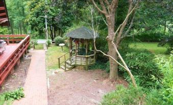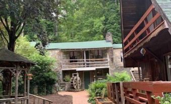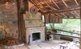 Surrounded by stone patio with outdoor living room and fireplace and adjacent our main house. One reserved parking spot on Rustic lane behind the cottage.