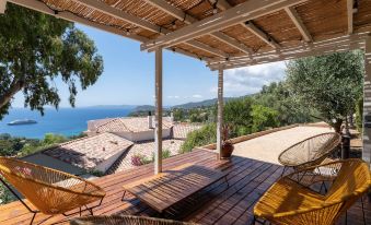 A pétanque court is located on a terrace at the rear of the villa, offering an exceptional sea view.