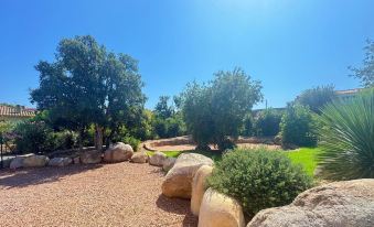 The nearest airport is Figari–Sud Corse Airport, just about 39 mins from hotel by car (32.6 km) away.Which airport is closest to Villa Marina - 5 bedrooms - swimming pool - air conditioning - 500m from the beach?