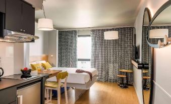Whether for one night or longer in the 125 studios of the Aparthotel Adagio Access Stuttgart Airport Messe, you will feel at home. Each category offers a fully equipped kitchen and a flexible living area. The 24 hours reception and free WIFI throughout the hotel enhance the experience. Our studios and apartments adapt to your lifestyle and are ideal for solo travelers, couples, or families. Family rooms are also available.
