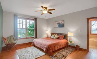 4 bedrooms: 2 single beds 2 queen beds and 1 king bed