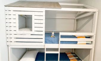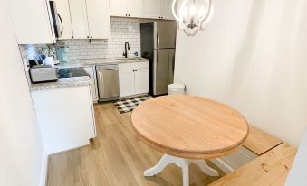 This cozy one bedroom apartment is the perfect place to unwind & relax. Located in the heart of downtown Leonardtown, the Retreat at Fenwick is steps away from many delicious dining opportunities, unique and fun shopping at local boutiques, and fun entertainment experiences. It includes free wifi, a full kitchen & complimentary coffee bar, a charming eat-in dining space, full size pull out sofa bed, a cozy electric fireplace, a sleek workspace, and whimsical bunkbeds that are great for kids!