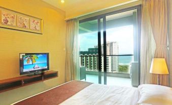 離海邊很近,下樓步行幾分鐘到海灘。附近還有美食城,大型超市,晚上的夜市也很熱鬧。房間挺大的,可惜住的是三樓,建議住高樓層看海的房間。