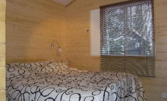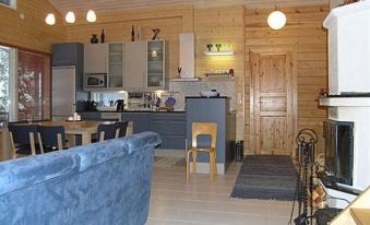 Cottage village situated log chalet 2005, living room/kitchen, 2 bedrooms with double beds, sleeping loft (sloping ceilings) with 3 mattresses, open porch. Sauna in same building (electric stove), washroom, dressing room, separate WC. Garage/woodshed with equipment/gear drying cupboard. Tumble dryer.