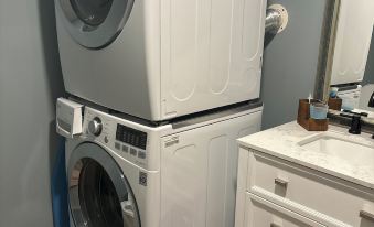 The Oasis includes a full tub/shower combo and features the work of a local artist commissioned to add to the space's ambience. Help yourself to one of the complimentary travel kits and the standard amenities like shampoo, conditioner. The Oasis is also where you can do any laundry while traveling. Katie personally DETESTs packing dirty clothes into a suitcase and made sure you wouldn't have to! Laundry detergent and dryer sheets are included.