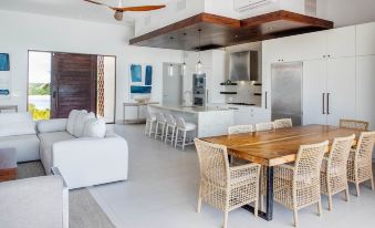Each of the four upper bedrooms feature access to seamless indoor/outdoor living on our expansive 2,000 square foot terrace. Perfect for sunbathing, reading a book or enjoying a seafood fare on, Tip of the Tail’s terrace is lined in glass and exudes an atmosphere that marries Miami with the Tropics.