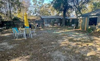 ✔ Private backyard with a hammock, fire pit, and outdoor dining area