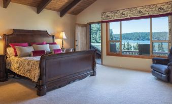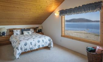 The all cedar great room has a vaulted ceiling with comforting furniture, fireplace, large screen HDTV, Bose surround sound and uninterrupted views that leads to its own large deck looking southeast. The gourmet kitchen has Viking, Bosch, and Subzero appliances. The imported granite counter tops and sitting area lends itself to gourmet or casual cooking. You are very likely to see Eagles, Deer, Otters, Mink and Seals from all arears of the house.