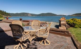 Enjoy a very private setting with expansive views of Swift's Bay, Thatcher’s Pass, Ferry Traffic and the Cascades from our special home.