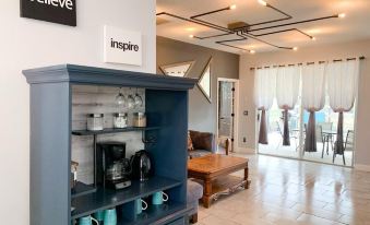 All 5 bedrooms are based on our very own personal travels around Europe and Africa. The large master features a tropical jungle from the Pacific Islands of Hawaii. The second master is a flashback to ancient Rome with a pillared bed and tiled ceiling. The third bedroom re-creates a Moroccan Riad hotel in "The Blue City" Chefchaouen with a Turkish lamp. The 4th bedroom takes you up into the clouds with a hot air balloon ride. The kid’s room completes the home with a pair of low-cut double bunkbeds and more local artwork for the perfect slumber party.