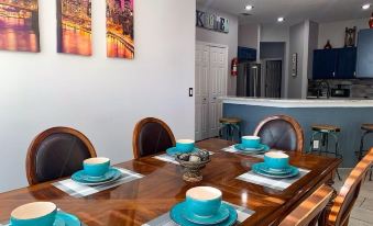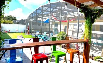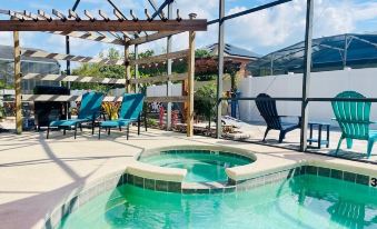 Step outside into the backyard and relax with everything it has to offer!!! Kick your feet up on our lounge chairs or with a drink under the pergola / bar. A tiki-styled putting green and cornhole will entertain for hours. And once the sun goes down, hop into the pool/spa combo because let's be honest...... Would it really be a Florida vacation without a pool!!!About pets:Pets allowed: dogs (limit 8 total).About checkOut:Check out before 11:00 AM.About children:Children allowed: ages 0-17.About checkIn:Check in after 4:00 PM.About smoking:Smoking is not permitted.About minBookingAge:Minimum age to rent: 21.About events:No events allowed.