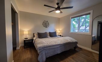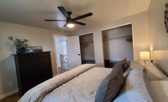 Beds were comfy. There was a ceiling fan in the bedroom and a full-length mirror! (Yay!) One of the bathrooms is small, but it was nice to have the 2nd bathroom. (Towels were nice and fluffy!) The kitchen had everything we needed. The host was very responsive to questions before and during our stay. We enjoyed our stay and would stay there again if we come back to the area.