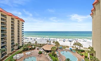 Located directly on the Gulf of Mexico, Summerhouse features two-bedroom, two-bath units, each with a balcony overlooking the gulf waters. Summerhouse is found on the east end of PCB, convenient to all the action the coastal town offers. Guests have full access to a wide range of amenities that include two gulf front pools, gazebo, hot tub, jet ski rentals and more beach services, pickleball and tennis courts, beach volleyball, and so much more. From Memorial Day through August, Summerhouse hosts summer movies under the stars, live music, karaoke, face painting for the kids, all sure to enhance your time spent there. The resort also has beach wheelchairs available for those who may need them.